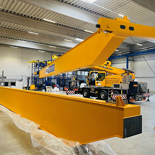 Auf dem Bild ist bereits ein entscheidender Teil dieses nächsten Entwicklungsschritts zu sehen: der Aufbau unserer neuen Krananlage. Die neuen Spritzgussmaschinen stehen bereit und werden in den kommenden Wochen montiert.