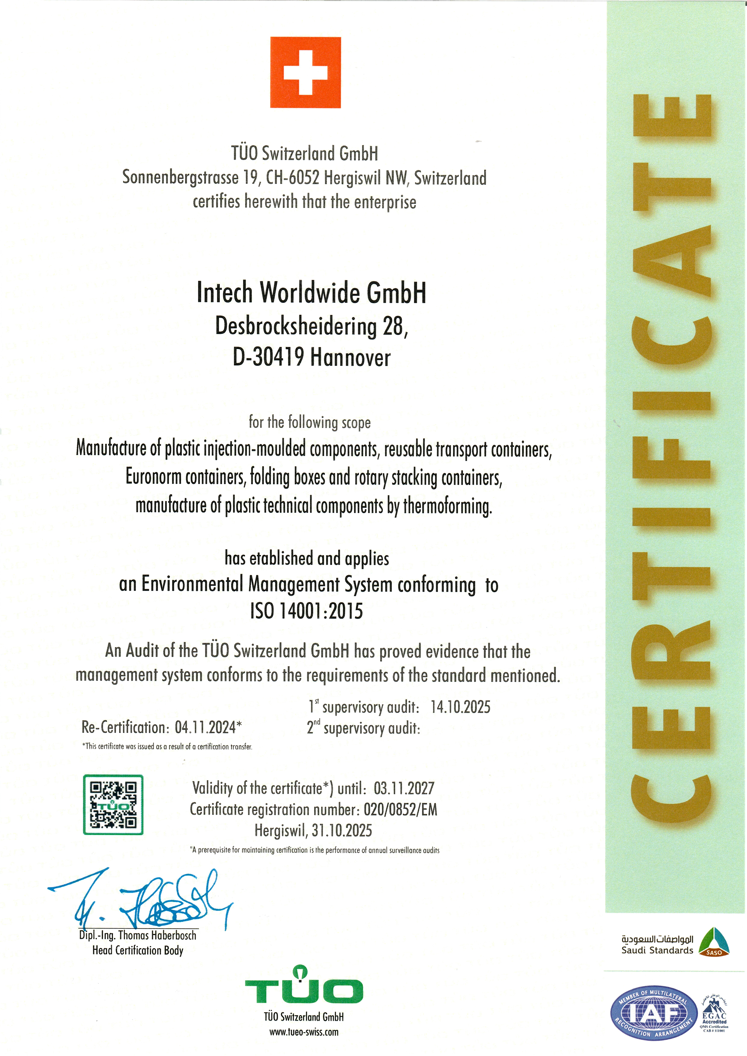 In addition to our certified quality management system according to ISO 9001, we are also committed to sustainable and environmentally conscious business practices. Therefore, we have successfully certified our environmental management system according to ISO 14001.