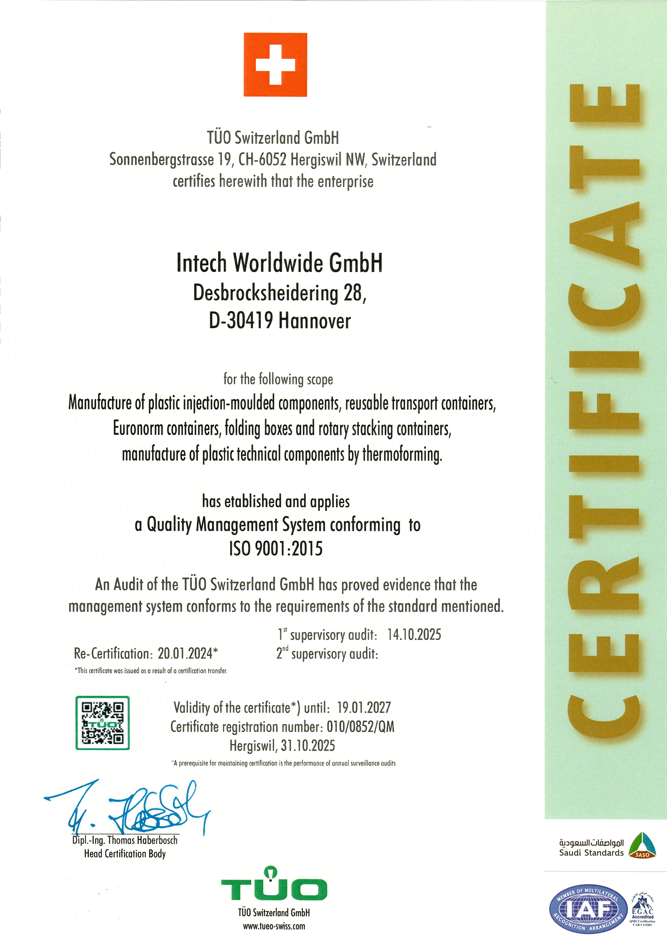 We keep a professional quality management and for years now, we have been certified according to the international ISO 9001 standard for quality management.